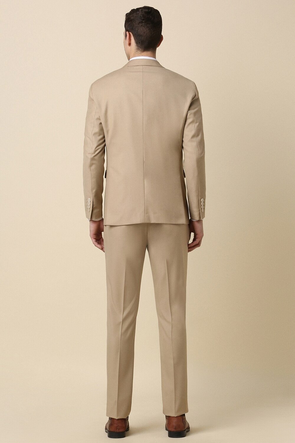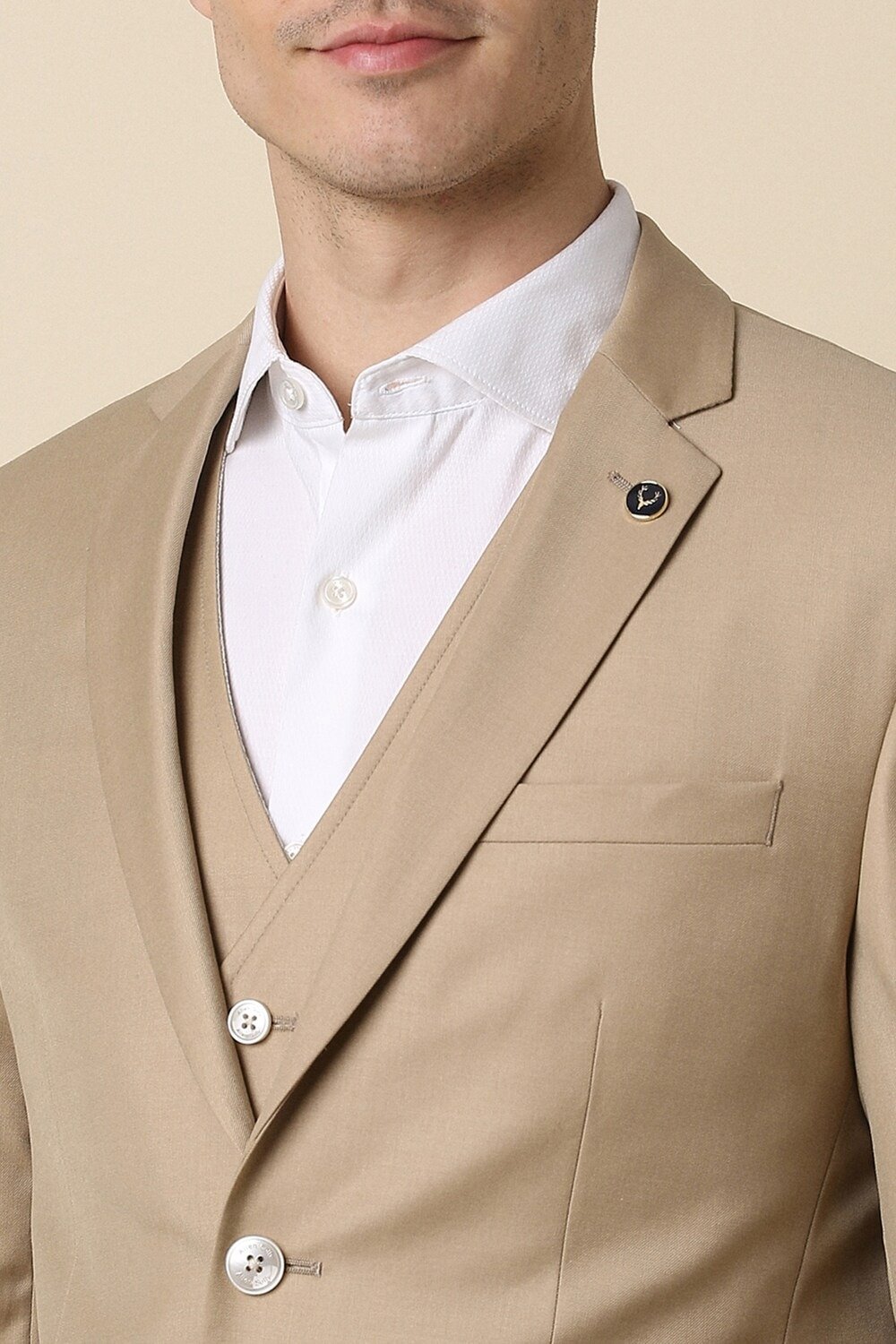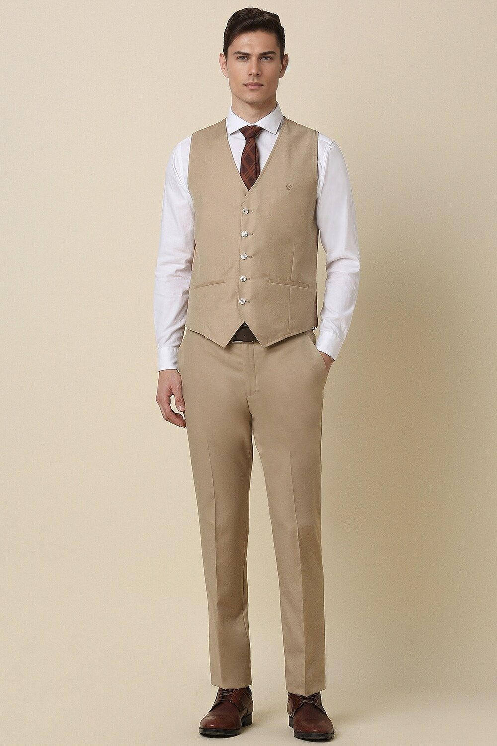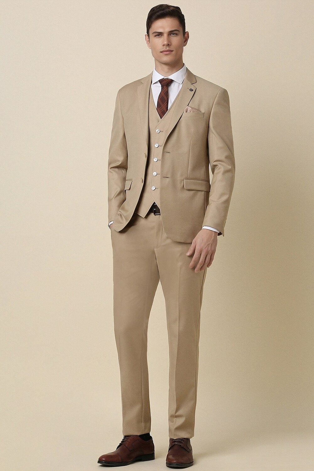Men Brown Slim Fit Solid Formal Three Piece Suit