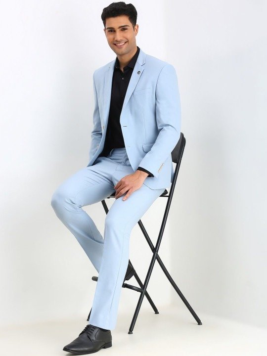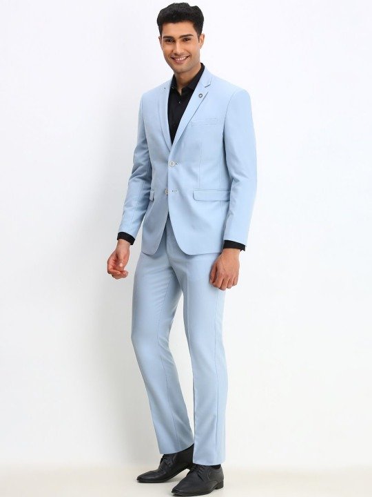 Blue solid slim-fit two-piece formal suit